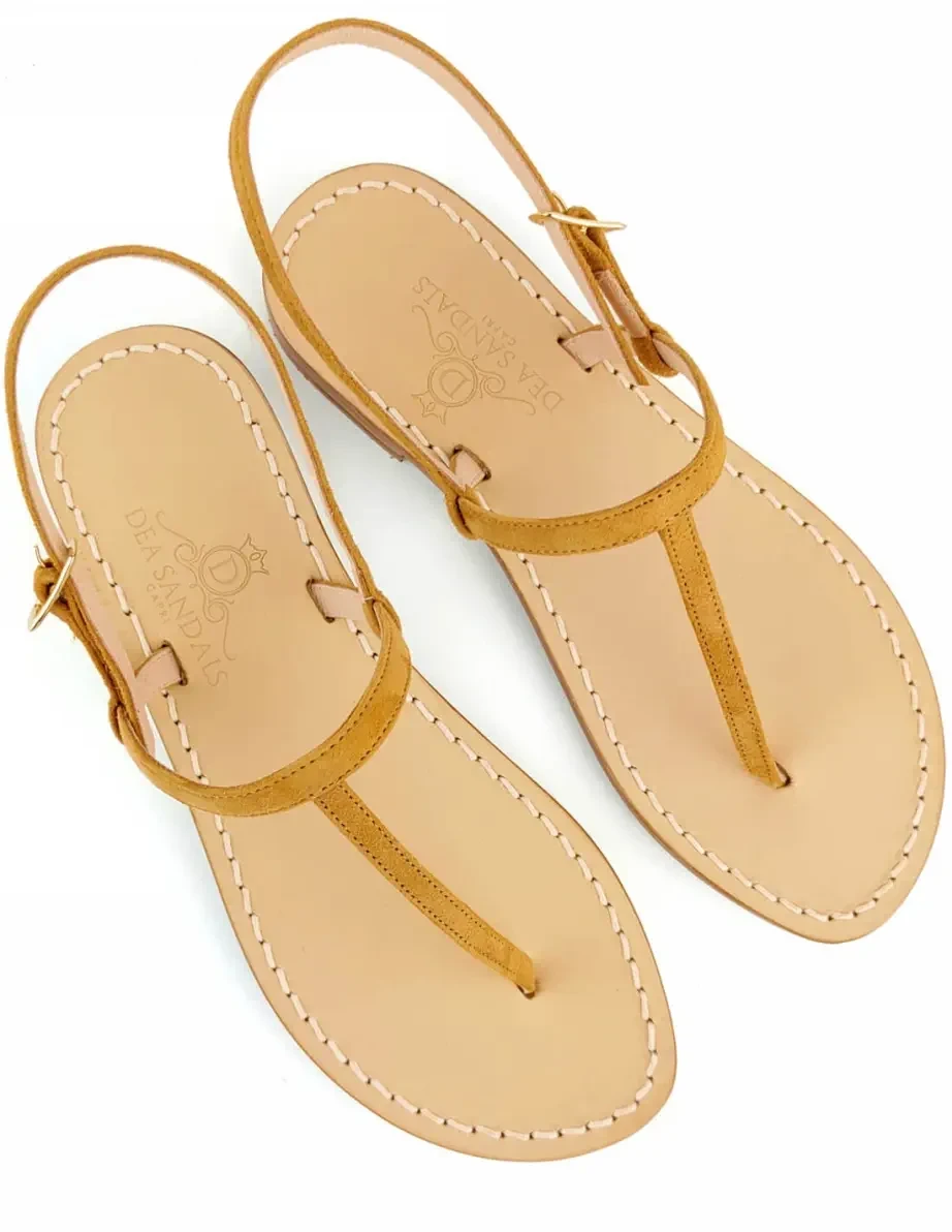 Dea Sandals CapriSandali Capri Whisky Camoscio listino in camoscio colore whisky foderato in pelle, suola in cuoio naturale, tacco in cuoio.